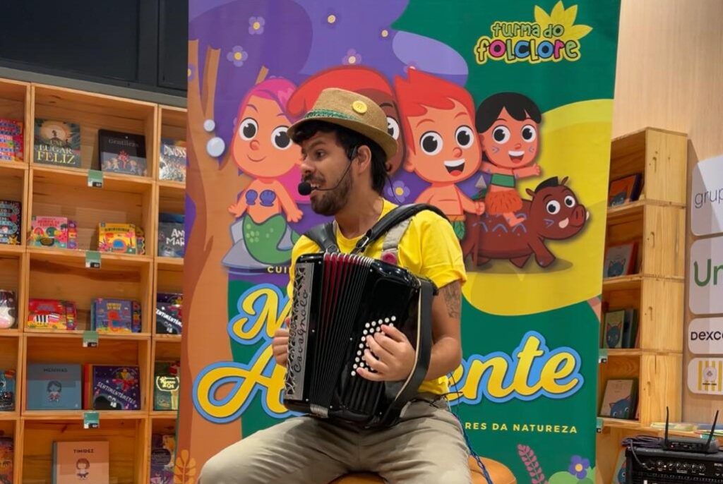 Entre os destaques está a contação de histórias com a Turma do Folclore, que apresenta o espetáculo “Cuidando do Meio Ambiente”. A proposta mistura personagens do imaginário brasileiro com temas atuais, de forma leve e acessível para as crianças.
